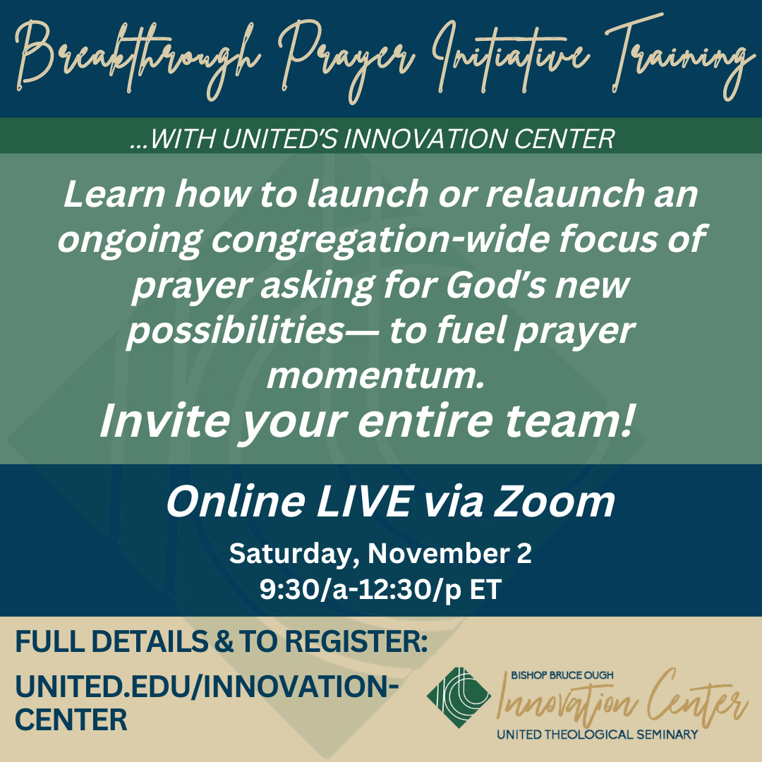 The Bishop Bruce Ough Innovation Center provides learning opportunities to resource church leaders and congregations with creative, practical, effective tools for unleashing God’s Church as the spiritual movement of Jesus Christ. One of the core initiatives is an 18-month congregational renewal cohorts for pastors and lay teams centered on breakthrough prayer and equipping possibilities. Pastors will also have the opportunity to pursue a Doctor of Ministry degree at United with a project tied to the work their church is doing in their Innovation Center cohort. The Innovation Center also offers webinars, events, and online resources throughout the year to go beyond the trends and share what innovative church leaders are actually doing about them. The goal of the center is to become a hub of innovation.